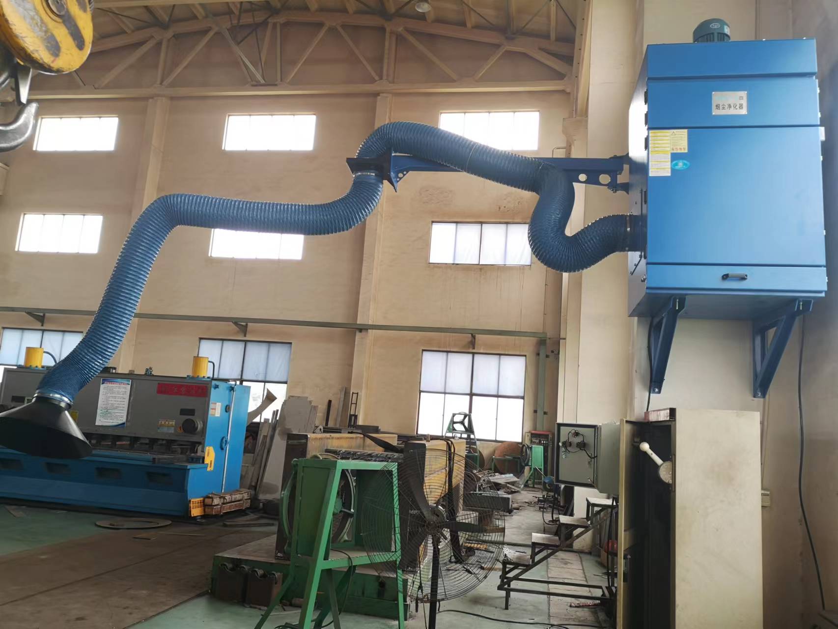 移動式煙塵凈化器通過電機風機所產生的負壓,利用柔性臂吸收各類煙塵、粉塵等。柔性臂具有360度轉動和任意位置懸停功能,吸收的煙